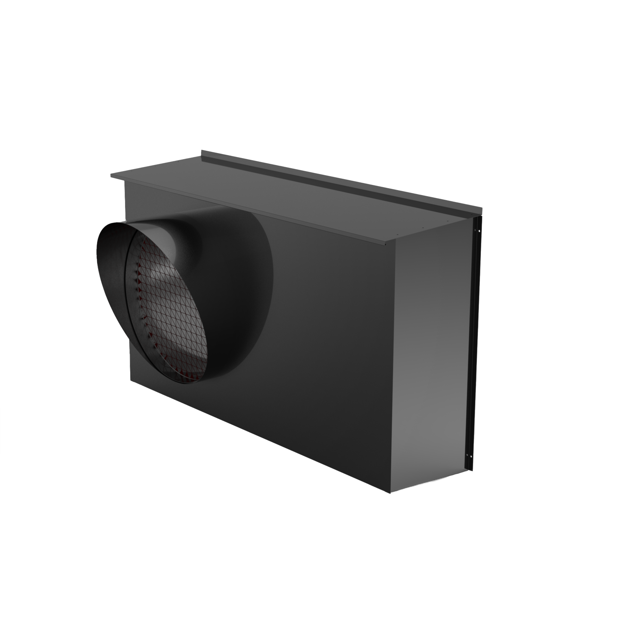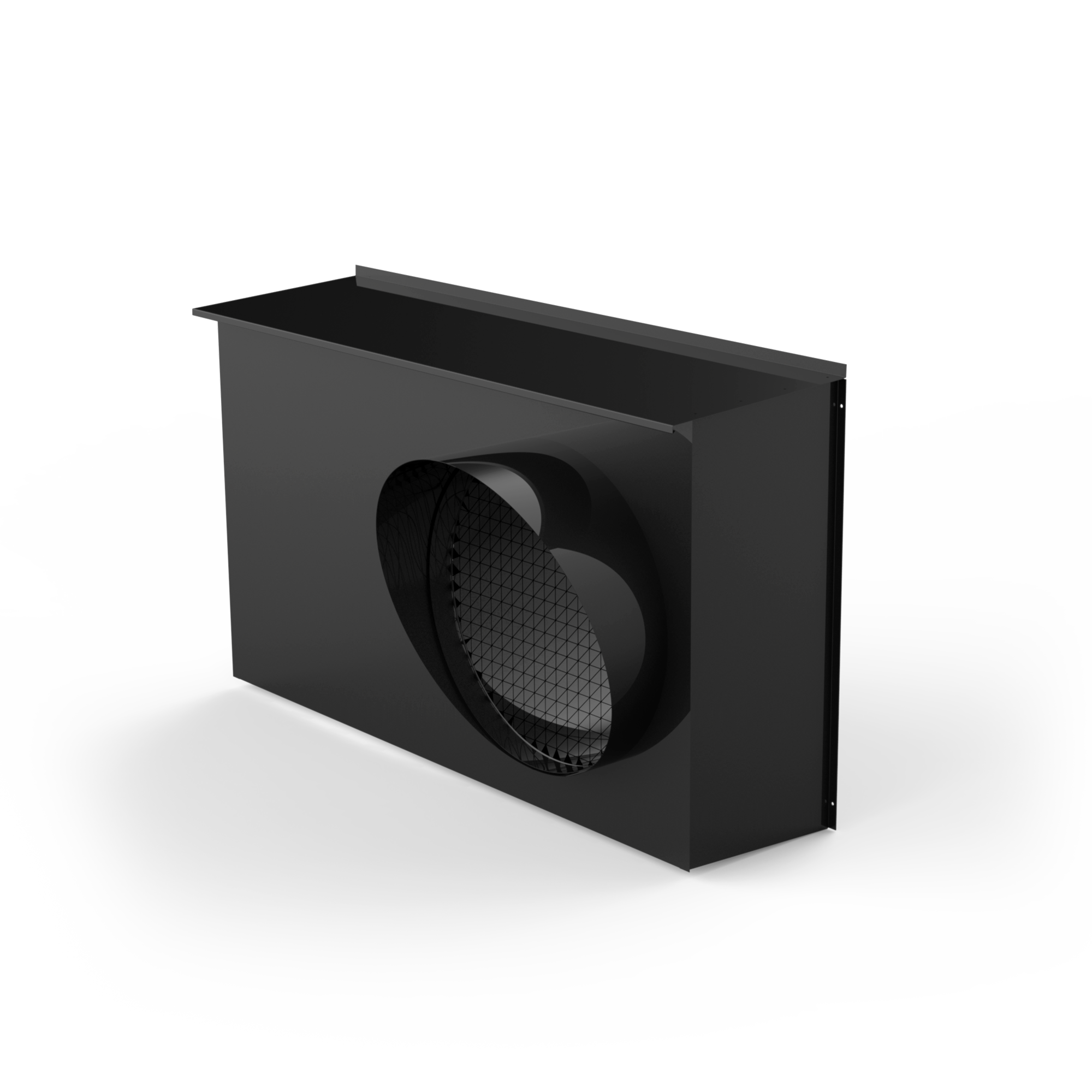 KDHA är kombinerat uteluft-/avluftsdon för väggmontage. Avluften riktas horisontellt ut från väggen och är försedd med en skärm som regnskydd. Uteluften tas in underifrån och produkten är konstruerad med smådjurssäkert nät på båda öppningarna av donet. Kombidonet kan enkelt byggas om för omvänd placering av anslutningarna på begäran.